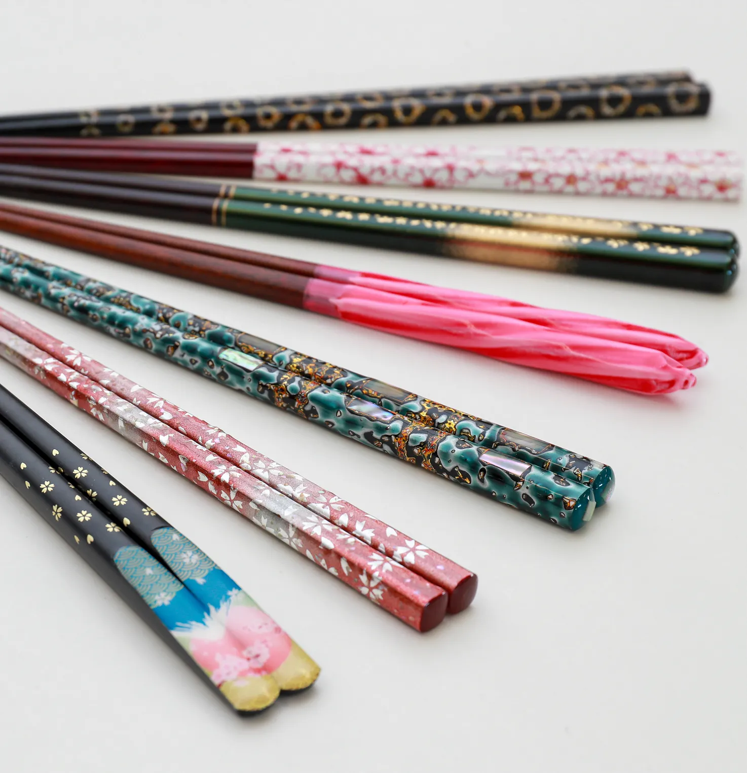 伝統的で美しい仕上げの若狭塗箸から、現代の暮らしに溶け込むモダンなデザイン箸まで、幅広い商品を取りそろえております。当社が誇る多様なラインナップを、どうぞご覧ください。