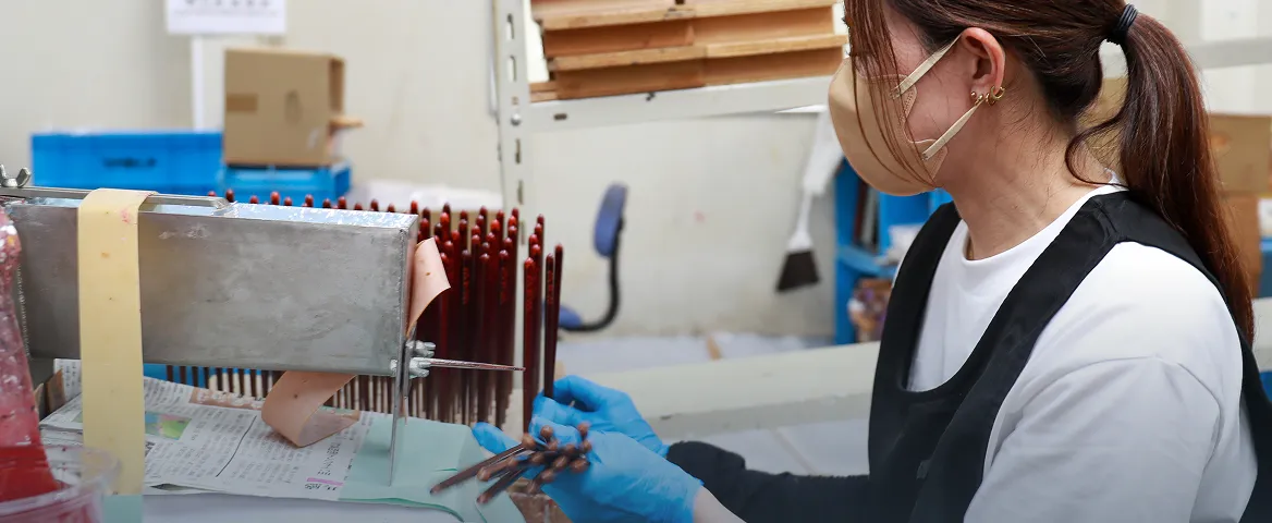 当社は、若狭塗箸の総合メーカーです。創立以来、若狭塗箸製造を牽引する企業として、技術力向上と高品質な商品供給に取り組んできました。伝統工芸若狭塗箸からモダンデザイン箸まで、自社工場にて一貫生産しております。