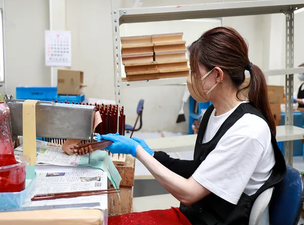 具体的には、箸を塗る機械や塗料の管理・工程の段取り・製品の品質チェック・若手社員の育成といった業務内容です。